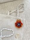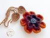 Häkelblume Applikation mit natürlicher Tigeraugestein
