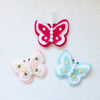 This pretty butterfly pattern is ideal for beginners as it is quick and easy to sew and a fun little crafty project. You can make as many as you like in a variety of colours and create ornaments, brooches, keyrings, bag charms, gift tags/toppers and party favours. Perfect to share with family and friends.