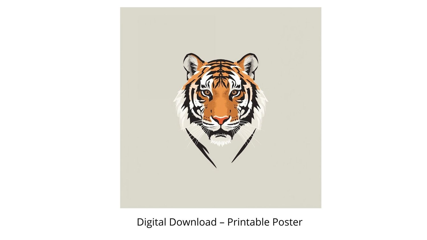 Minimalist Tiger Wall Art Printable – Soft Modern Animal Poster