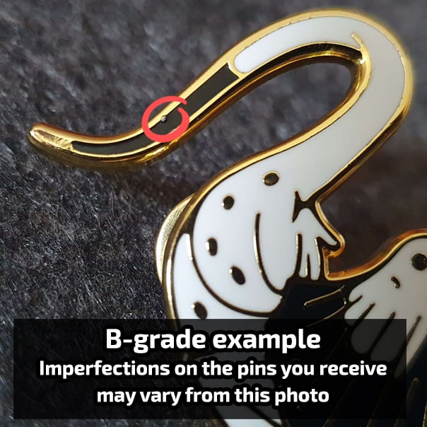 As enamel pins are handmade items, small imperfections can occur. I carefully inspect every single pin and sort them into different quality categories.