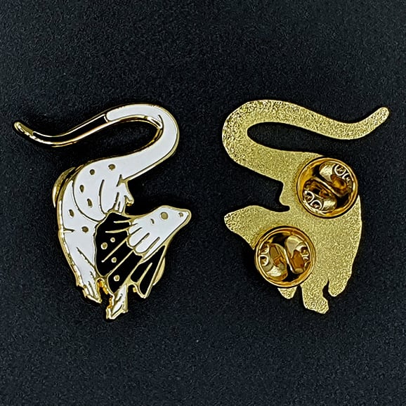 The Frilled Lizard hard enamel pin has two back posts and comes with two butterfly clutches.