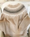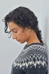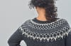 Nuala is a yoke sweater knit seamlessly in the round from the bottom up. The fit is tailored but relaxed with an elegantly sloped neckline.