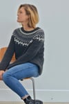 This pullover is worked in the round from lower edge to the underarms. The sleeves are worked separately in the round, then the sleeves and body are joined to work the yoke. Shaped it integrated into the colorwork yoke chart.