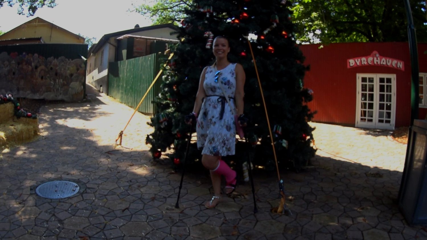 Lucy is at the amusement park with her friend today in Denmark to have some fun although her left leg is still broken from her accident a couple of months ago. Lucy is mostly walking with her casted foot wearing a cast shoe. The two girls visits the arcade section and wanted to play some air hockey, they have a lot of fun in here while Lucy seem to have forgotten that she’s walking around with a whole cast on her leg. She moves around a lot, I hope she doesn’t get hurt again now after this. The girls tries some other games too before they chooses to keep on going. Lucy finds a big Christmas three in the middle of everything and wanted to take a picture with it, she then poses as the cameraman takes her picture. Now that she’s happy, Lucy finds some hay to sits down on for a quick rest and realises that she’s a little sore now after walking on the casted foot for this long. She takes her cast shoe off and grabs the crutches, now Lucy is ready for another round.