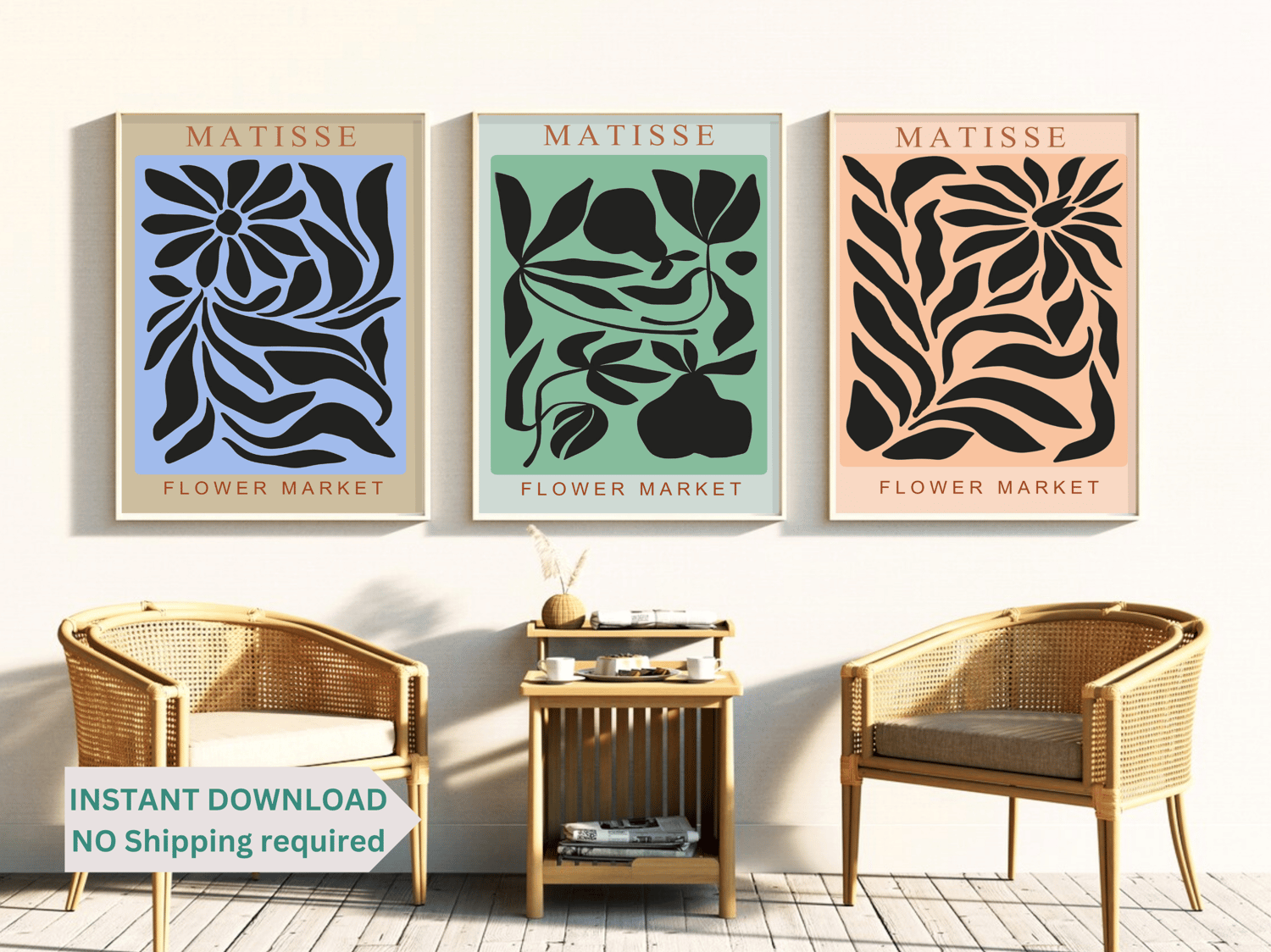 Matisse Flower market black Prints Set of 3 Wall Art Abstract Gallery posters