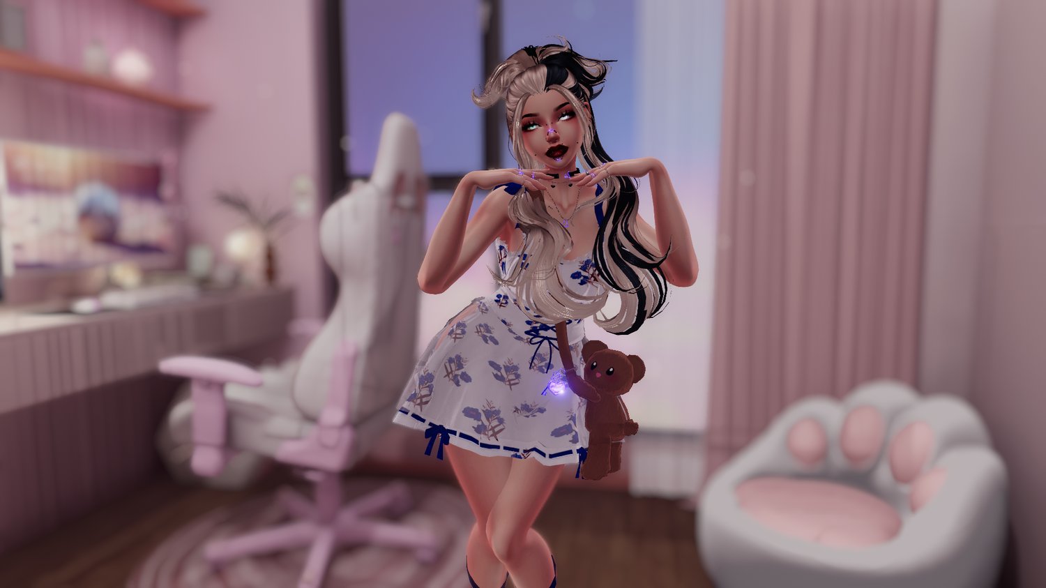Venus ready for fancy date night or comfy night at home. With cute customization and fun goodies, kissing booth, date night goodies, along with neck merge, Gogo Loco, Face Tracking, you won't want to miss out on her. She is Full Body Tracking Ready