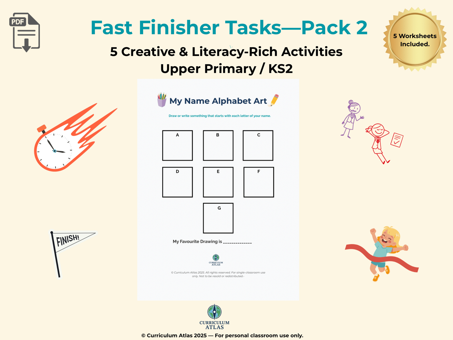 This Fast Finisher Activities Pack #2 includes 5 imaginative writing and drawing challenges designed to stretch creative thinking, boost literacy skills, and keep pupils engaged the moment they finish their main task.