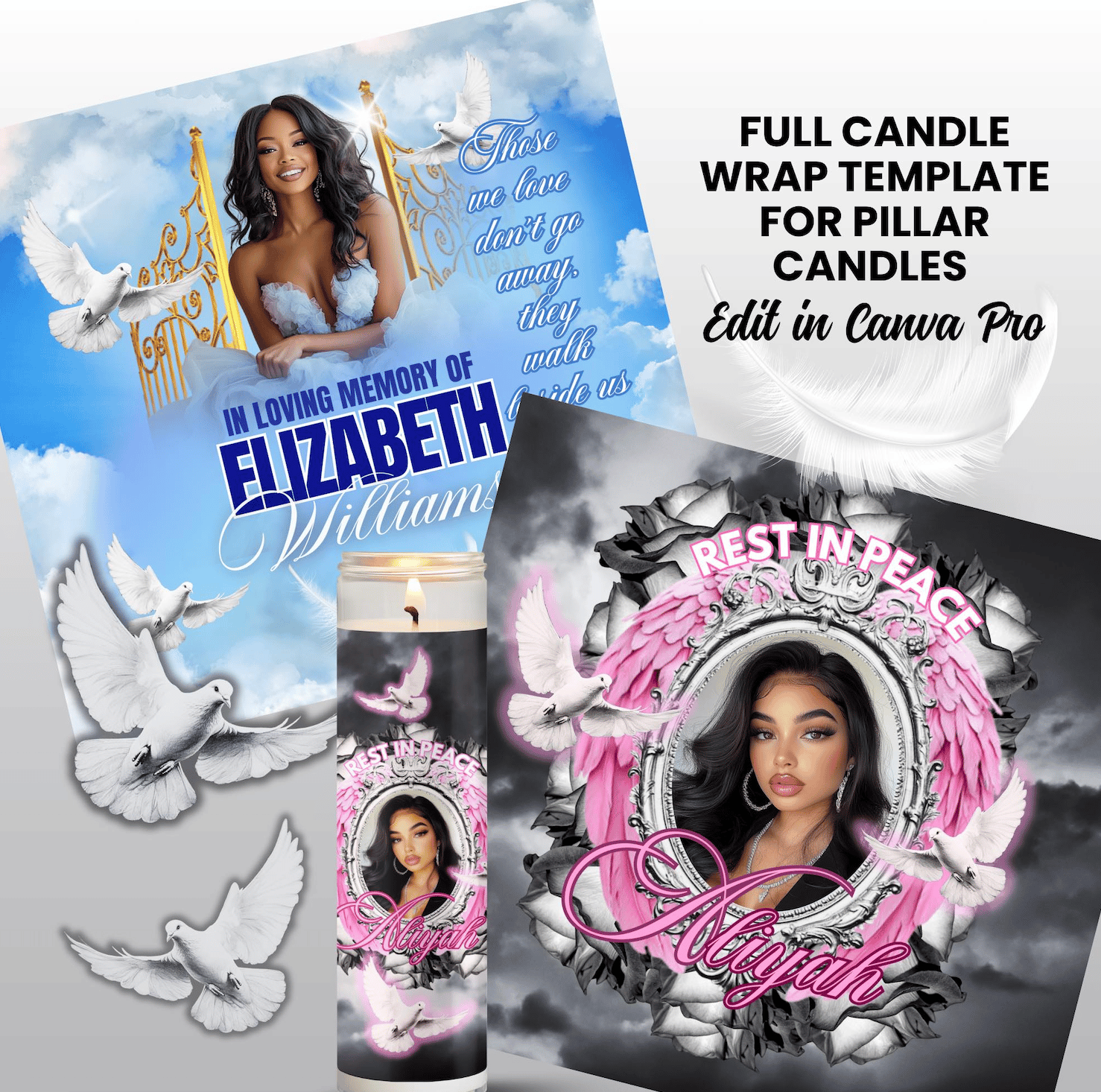 - Designed for pillar candles but can be resized for jars, labels, or other memorial items