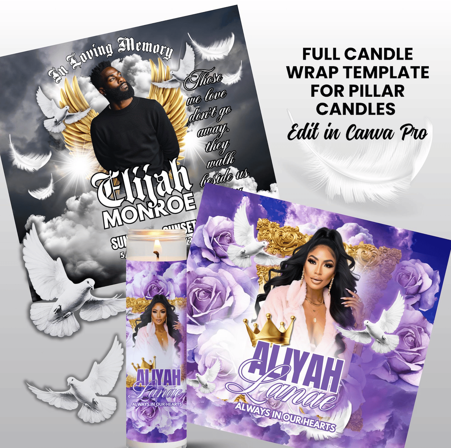 Honor your loved ones with a beautiful keepsake. This Memorial Candle Wrap Template is designed for pillar candles and can be fully customized in Canva Pro. Add photos, names, dates, and personal messages to create a meaningful tribute for funerals, memorials, anniversaries, or celebration-of-life ceremonies.