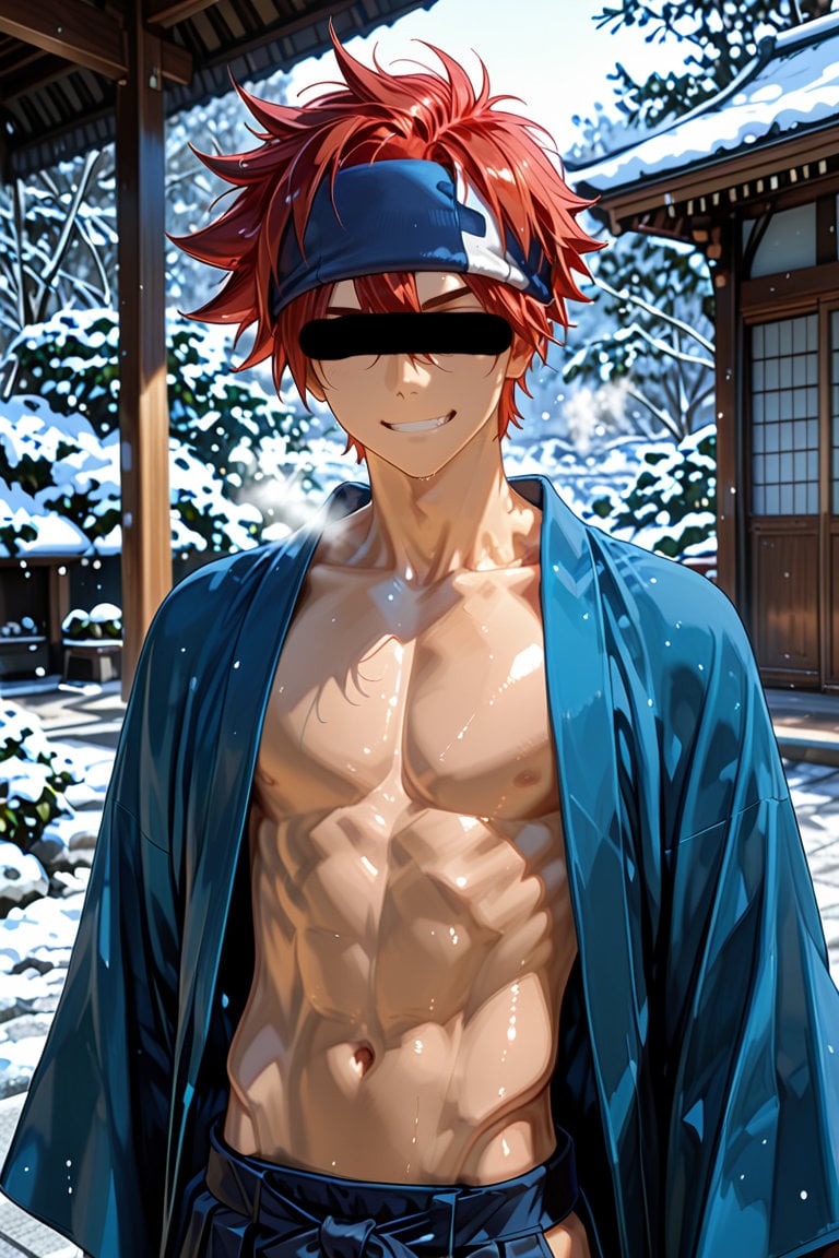 日本の正月をテーマに、着物を着用している男性を、キャラクターごとにお任せ作成しました。男らしいキャラクターの魅力を思い切って表現しました。