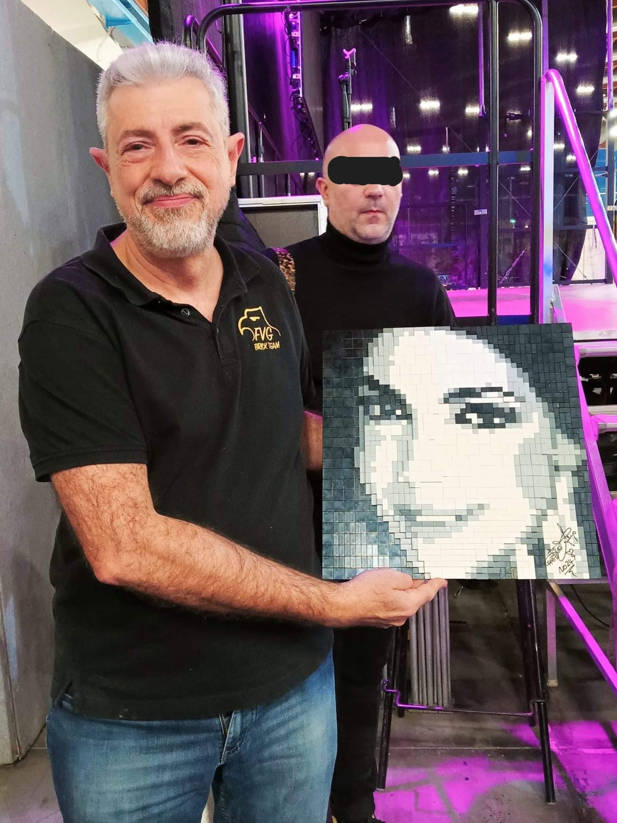 Ho deciso di costruire un mosaico per lei in due copie, così ho la mia firmata che espongo agli eventi e l'altra è appesa a casa sua.