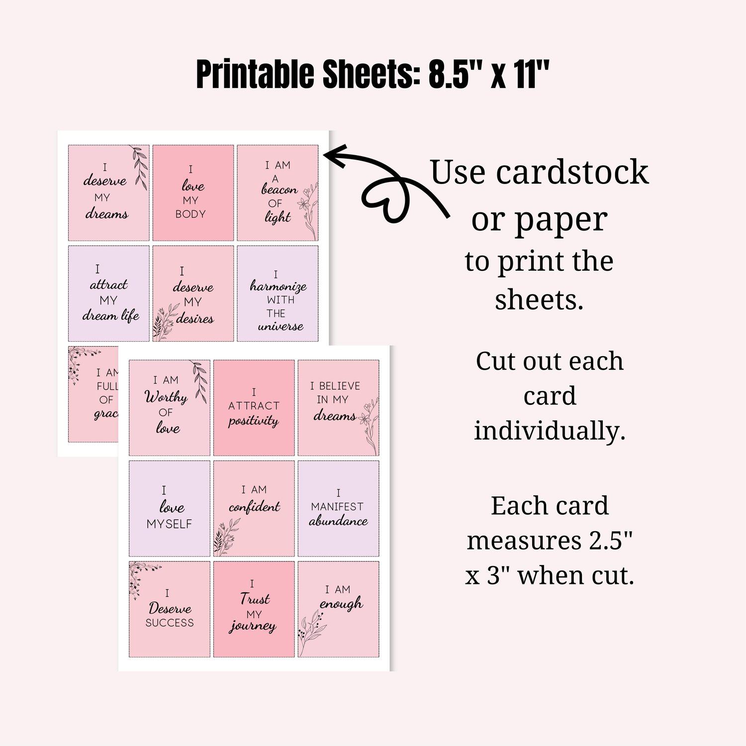 Empowerment and Self-Love Affirmation Card Set, Vision Board Printables, Law of Attraction Cards, Manifestation Kit, Self-Care Printables, DIGITAL