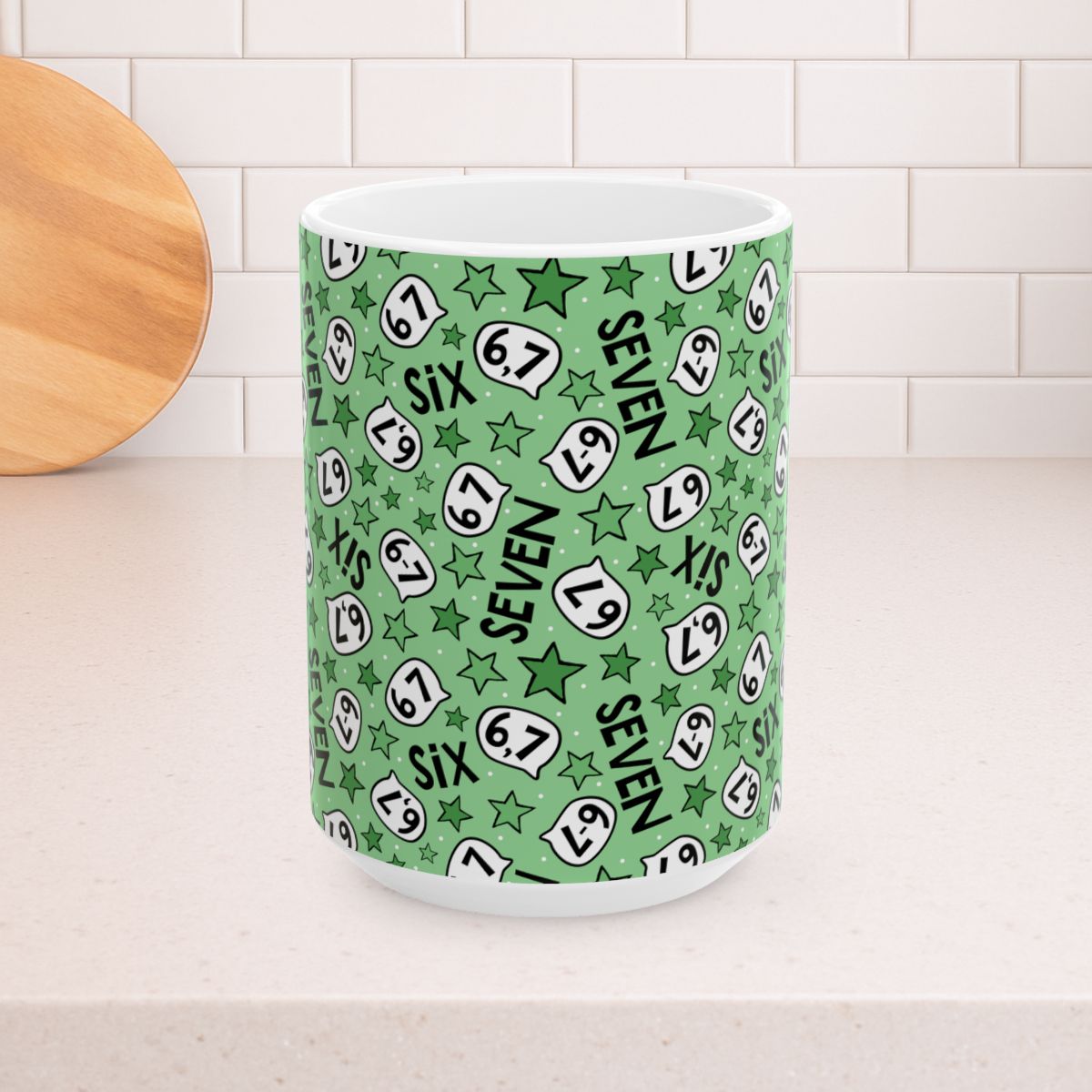 6 7 Humor 15oz Ceramic Mug, Large Coffee Cup, Teacher Gifts 67