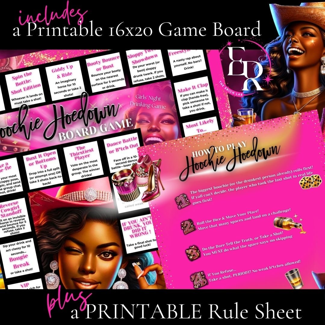 ✔ Hoochie Hoedown Board Game (16x20” Editable Canva Template + PDF & PNG) – Customize the dares & branding!