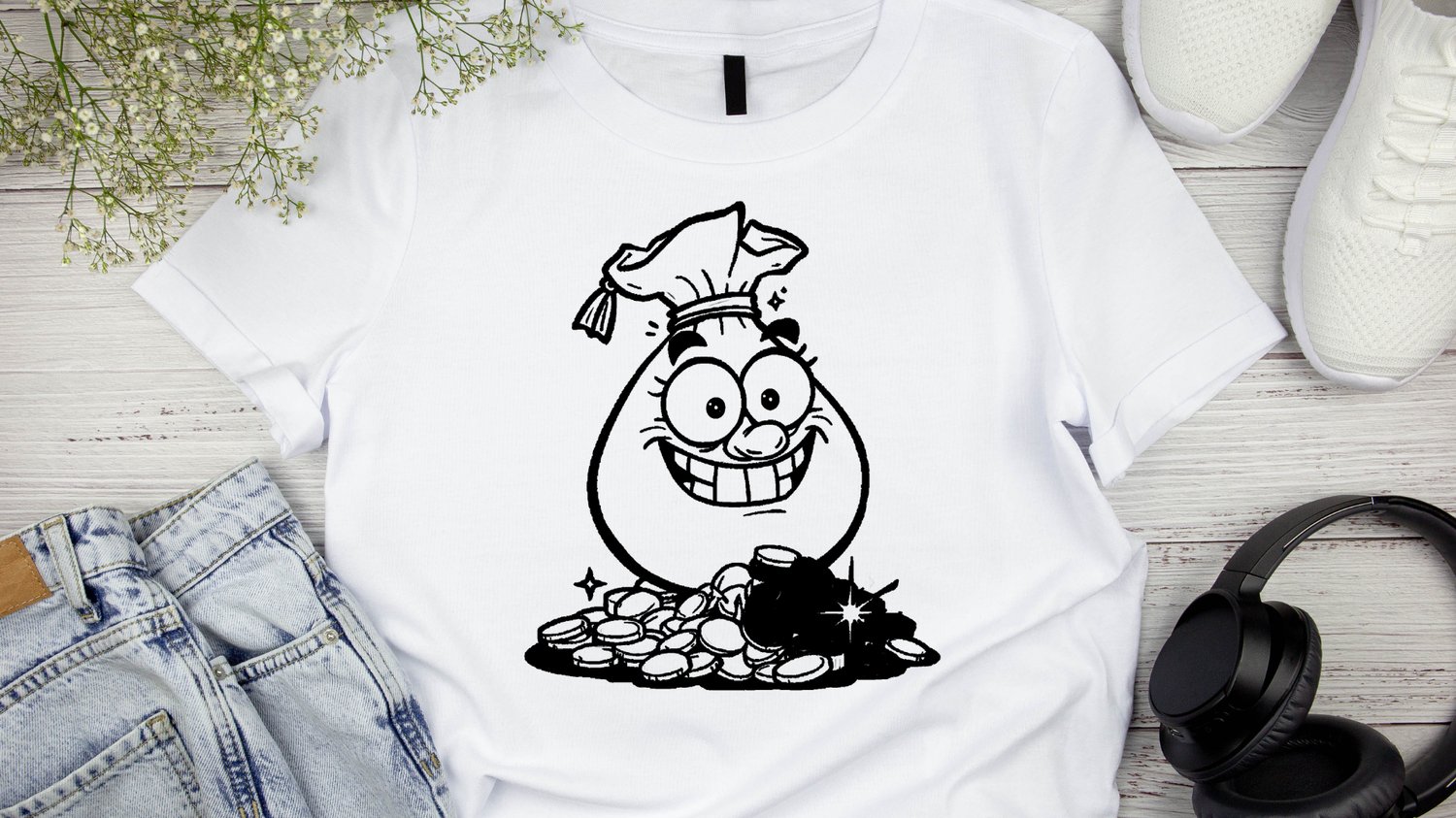 Bring fun and excitement to your creations with this playful cartoon-style money bag, smiling wide as cash spills out all around it! Perfect for T-shirts, mugs, stickers, posters, and digital art projects, this design adds a joyful, comic-inspired touch to anything you create.