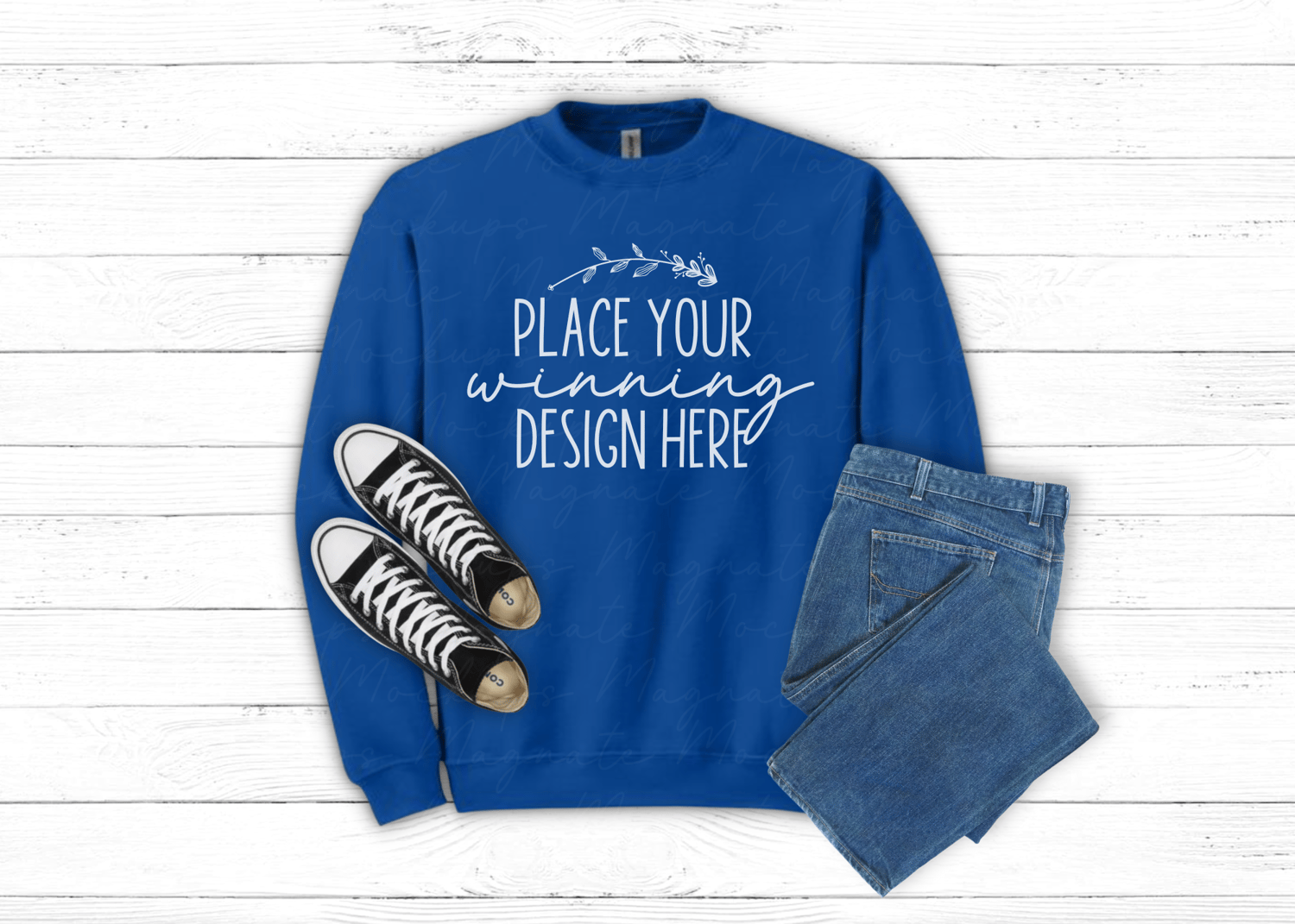 Royal Sweater Mockup Gildan 18000 Blue mockups Royal Blue Gildan 18000 sweatshirt flat lay mock ups sweaters flat lay mock up jpg download