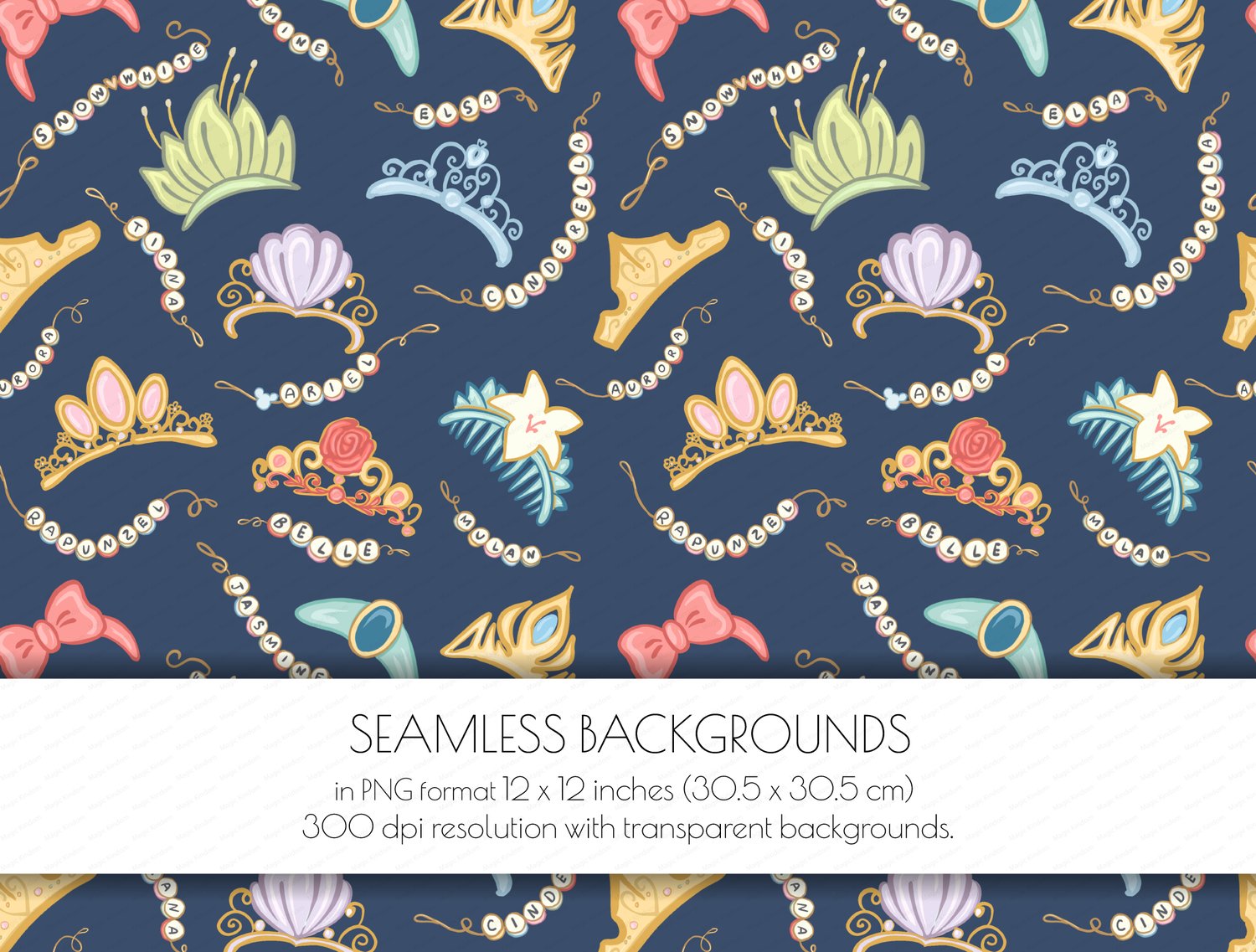 1 Disney Princess Crowns Seamless Background in PNG format 12 x 12 inches (30.5 x 30.5 cm) 300 dpi resolution .