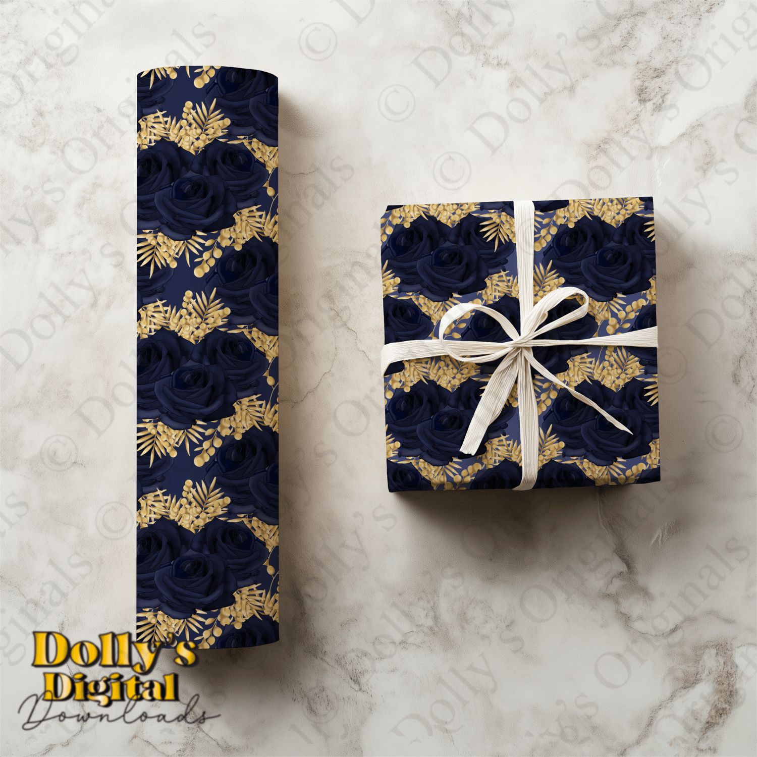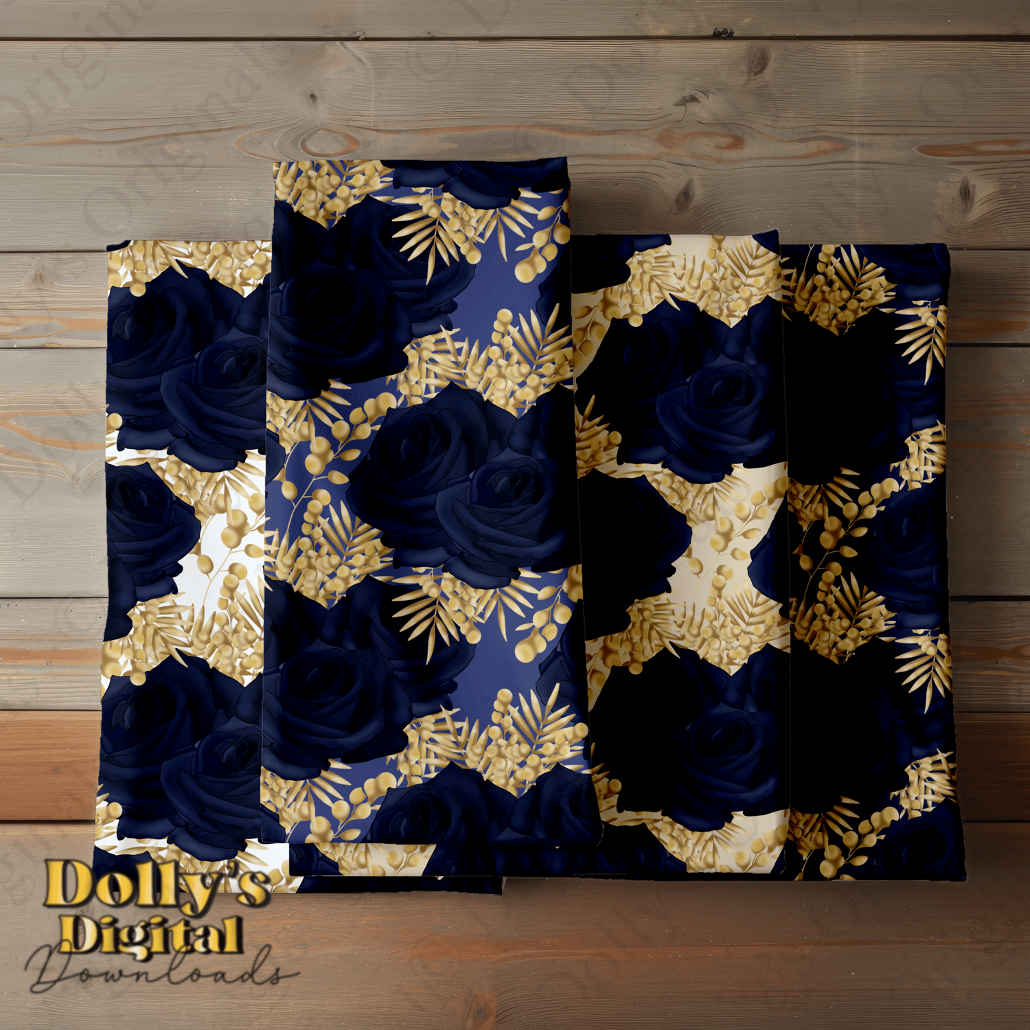 Instant digital download of our Navy and Pale Gold Roses Seamless Patterns (4 PNG’s)