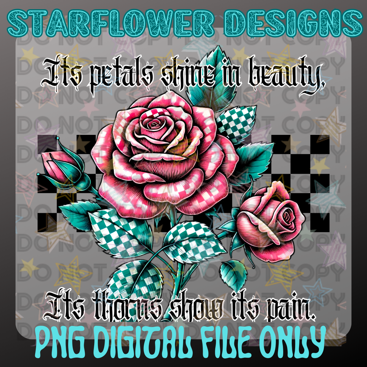 Its petals shine in beauty, its thorns show its pain-PNG Digital File Only