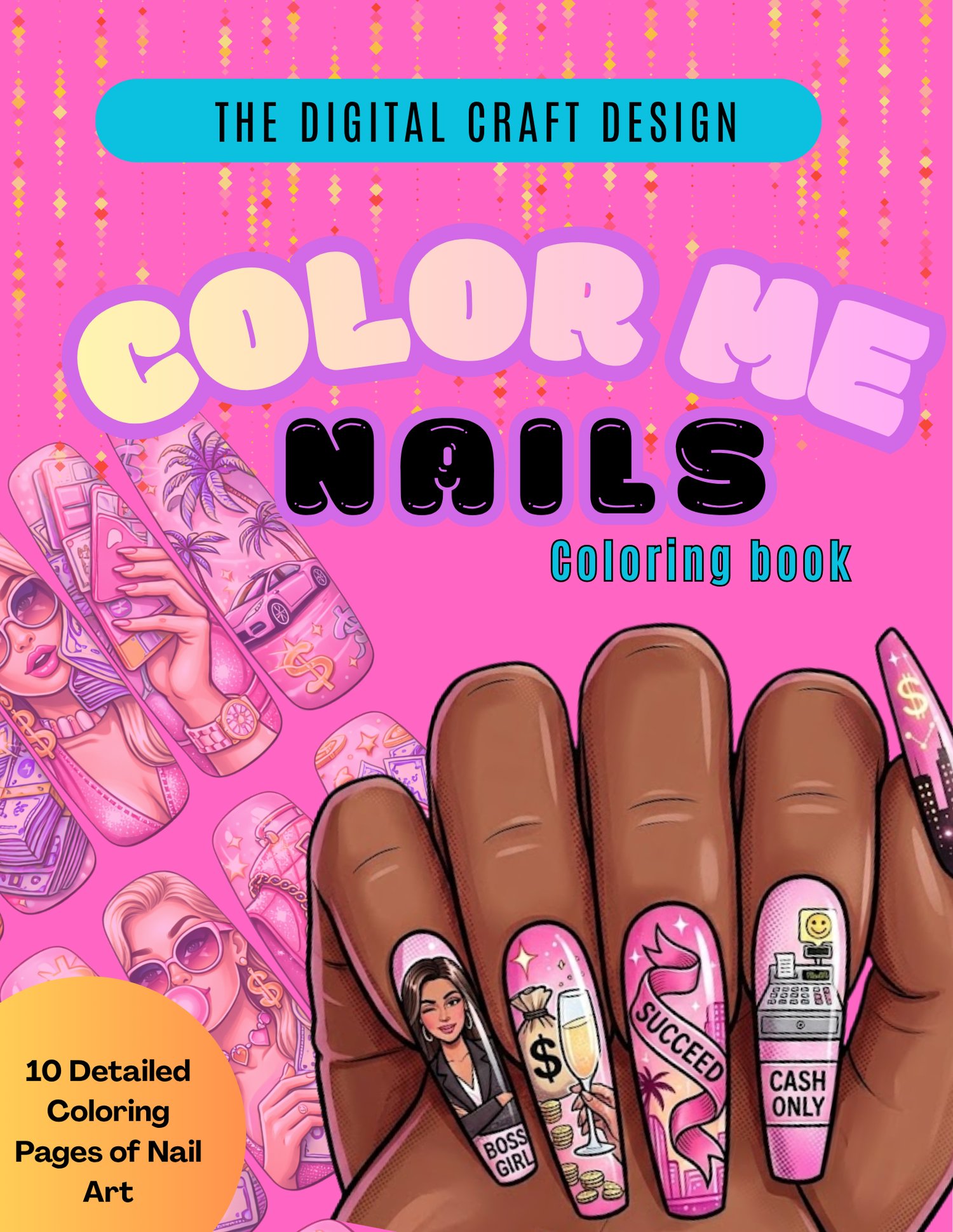 - Trendy, detailed nail sets perfect for coloring
