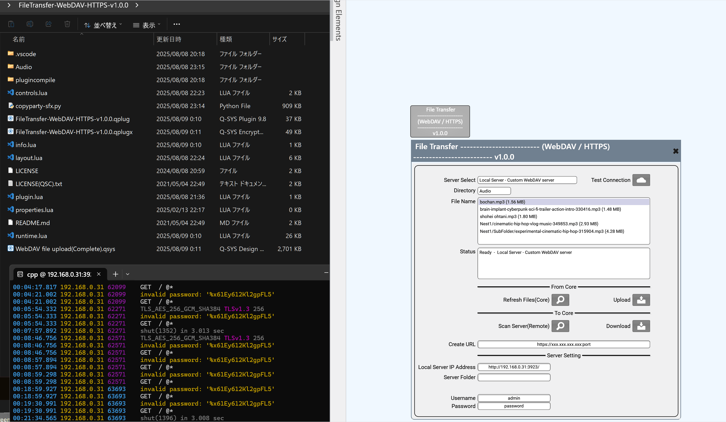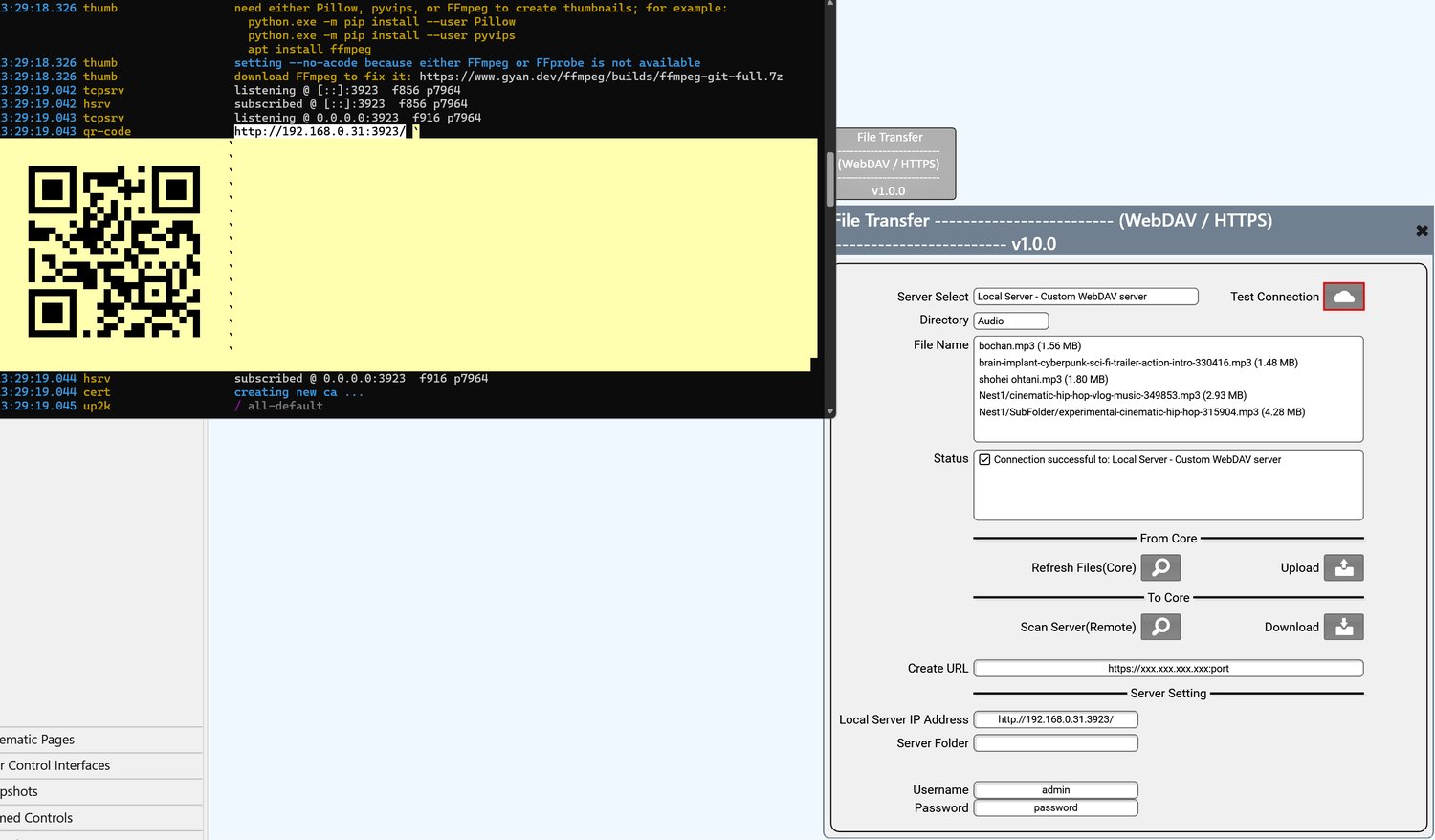 By using the copyparty that can be run solely with Python (from the link: https://gigazine.net/gsc_news/en/20250729-copyparty/), you can turn your local PC into a server, allowing file exchanges with this plugin.