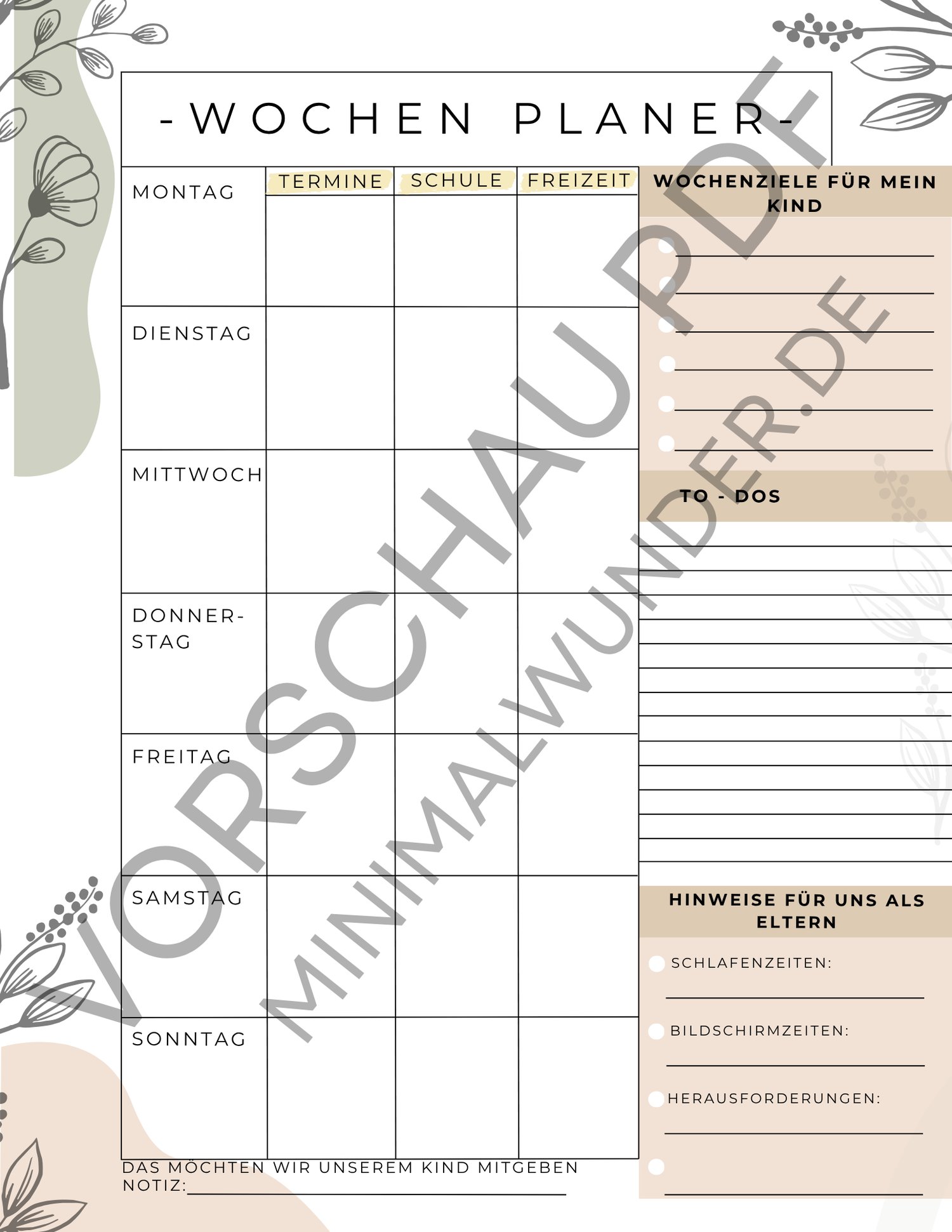 Dieser liebevoll gestaltete Wochenplaner hilft dir dabei, den Alltag deines Kindes übersichtlich und achtsam zu organisieren.