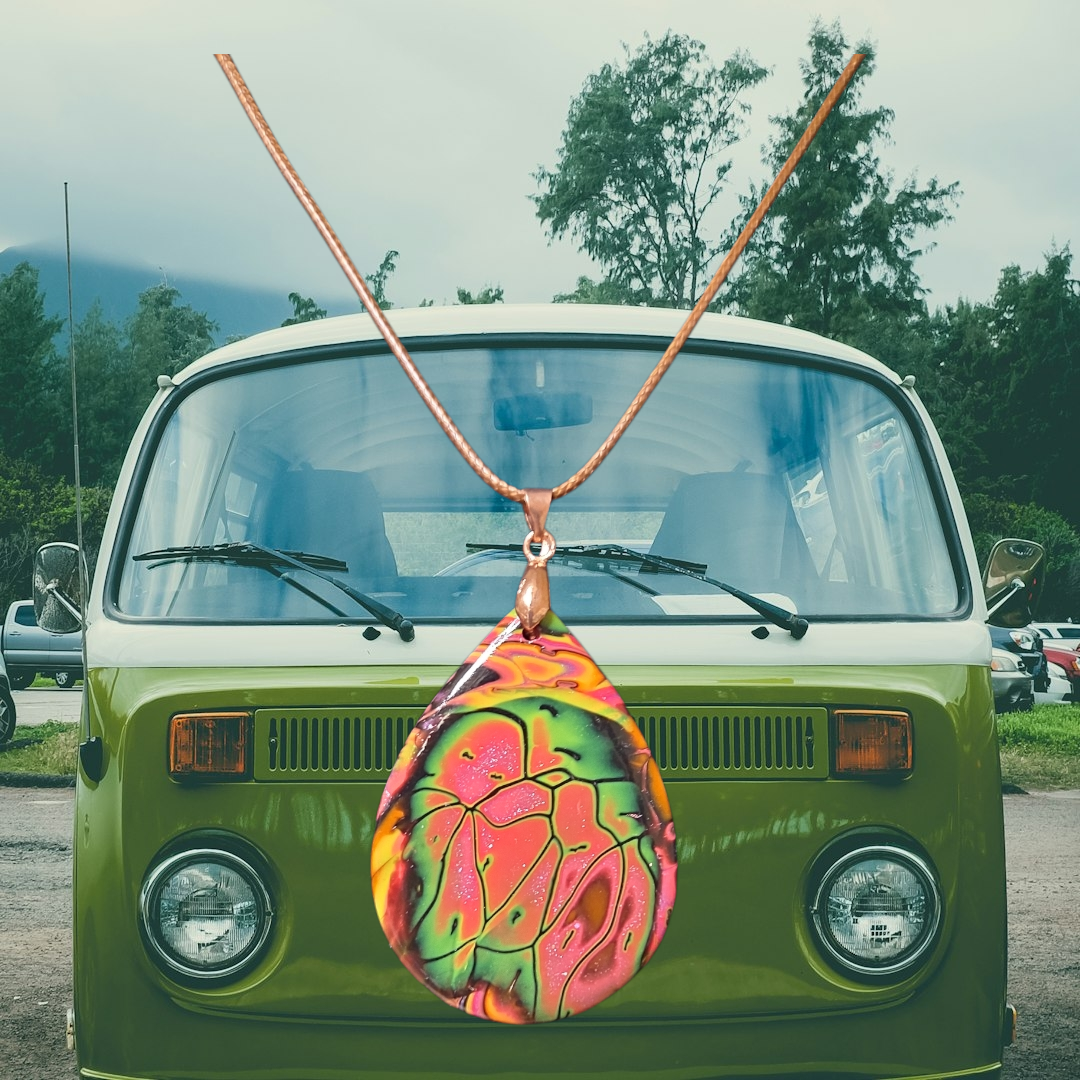 This Boho inspired necklace is made using a one of a kind technique with bright colorful clays.