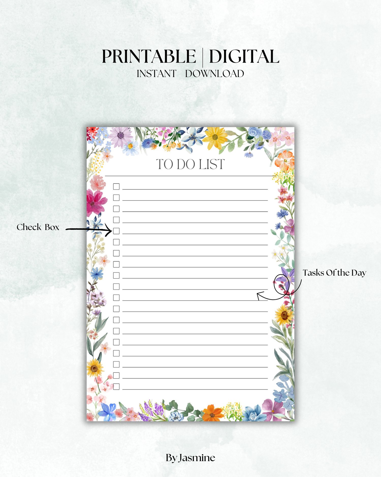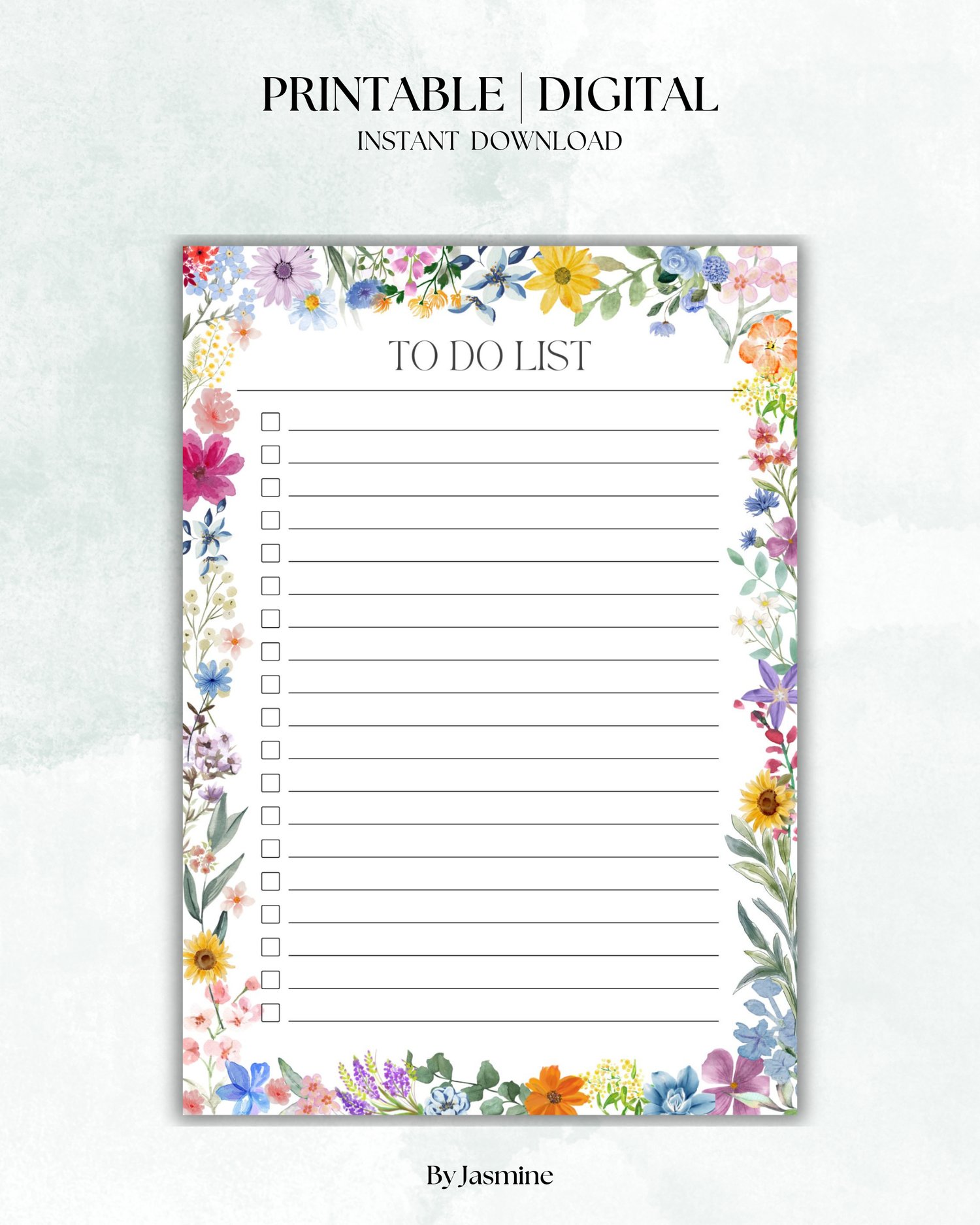- A beautifully designed floral to-do list page