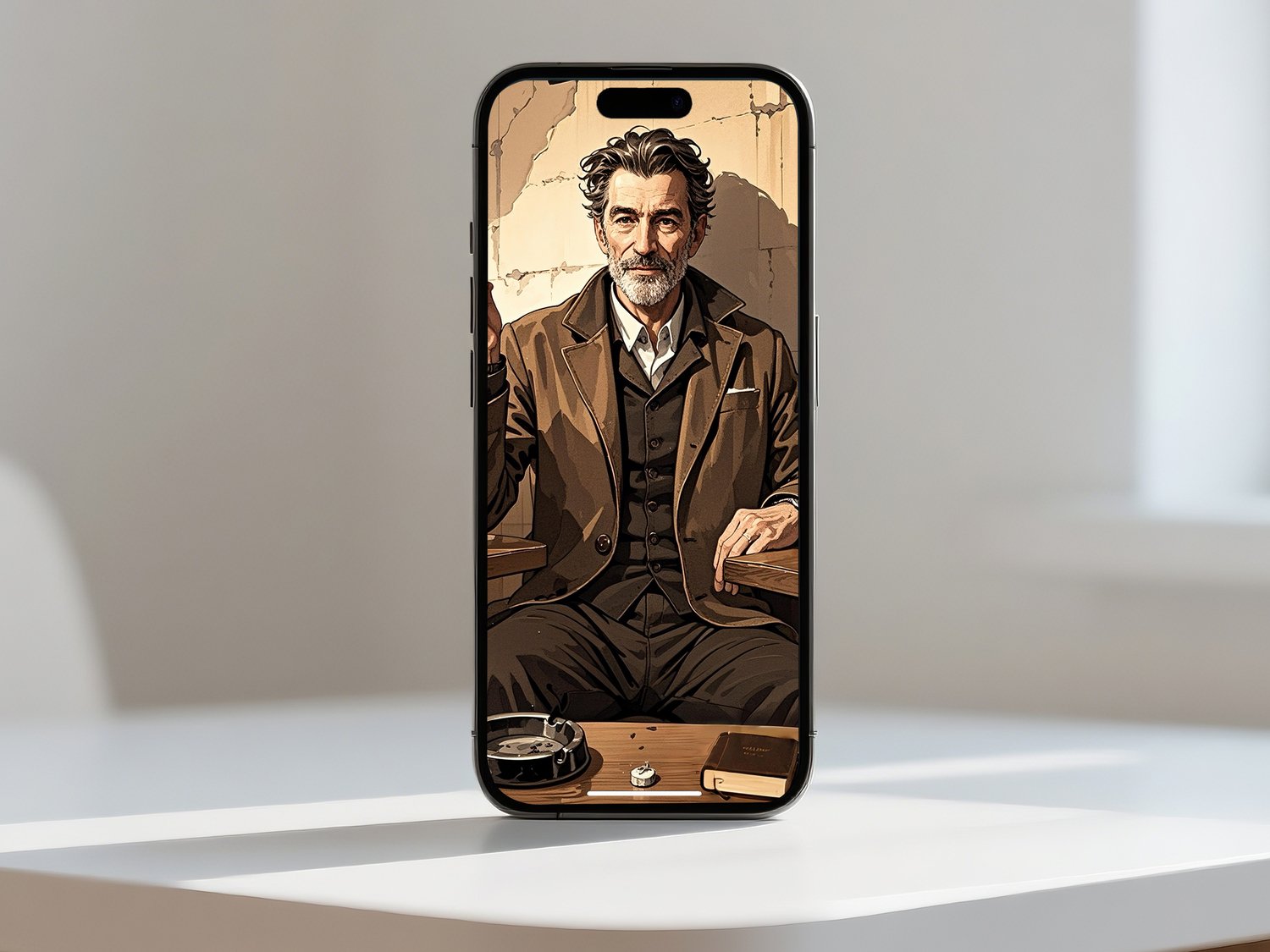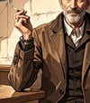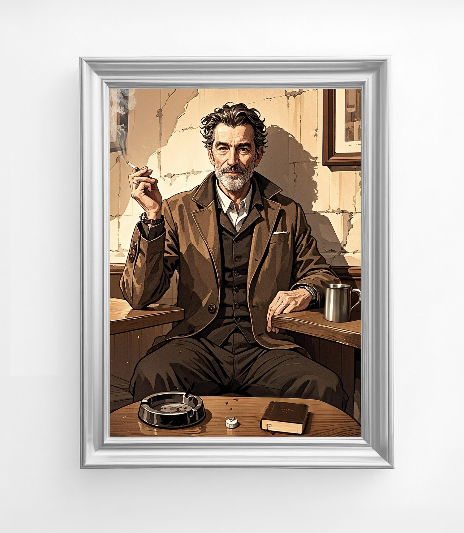The man’s posture and expression convey calm authority and dignity, inviting viewers to imagine the kind of life he has led. Everyday details such as the coffee cup and ashtray create a sense of realism and intimacy, capturing a fleeting yet powerful moment of daily life.