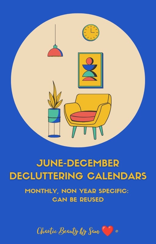 Introducing the Declutter Calendar Pack: June-December - the ultimate solution to declutter your living space and regain control over your belongings. Say goodbye to the overwhelm of clutter and hello to a clean and organized home. With our digital product, you'll experience a clear roadmap and actionable steps to tackle the mess, one month at a time.