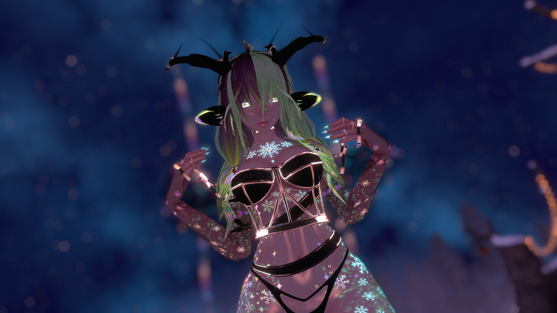 • Rings • Torso gem • Choker • Antlers • Antlers ribbon • Deer ears & tail • Long eyelashes on/off • Head particles on facial gestures • Piercing toggles