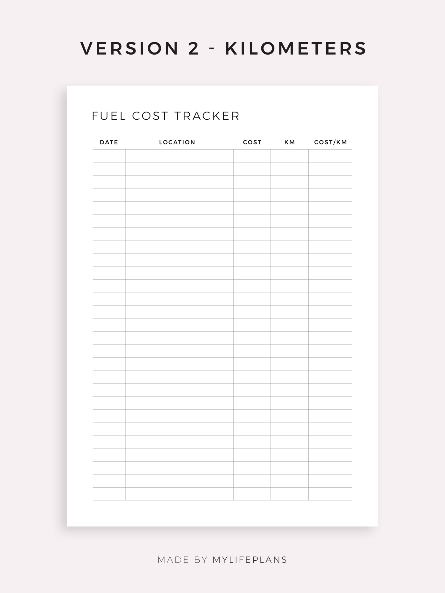 This is a printable fuel cost tracker — just download, print, and start using it right away.