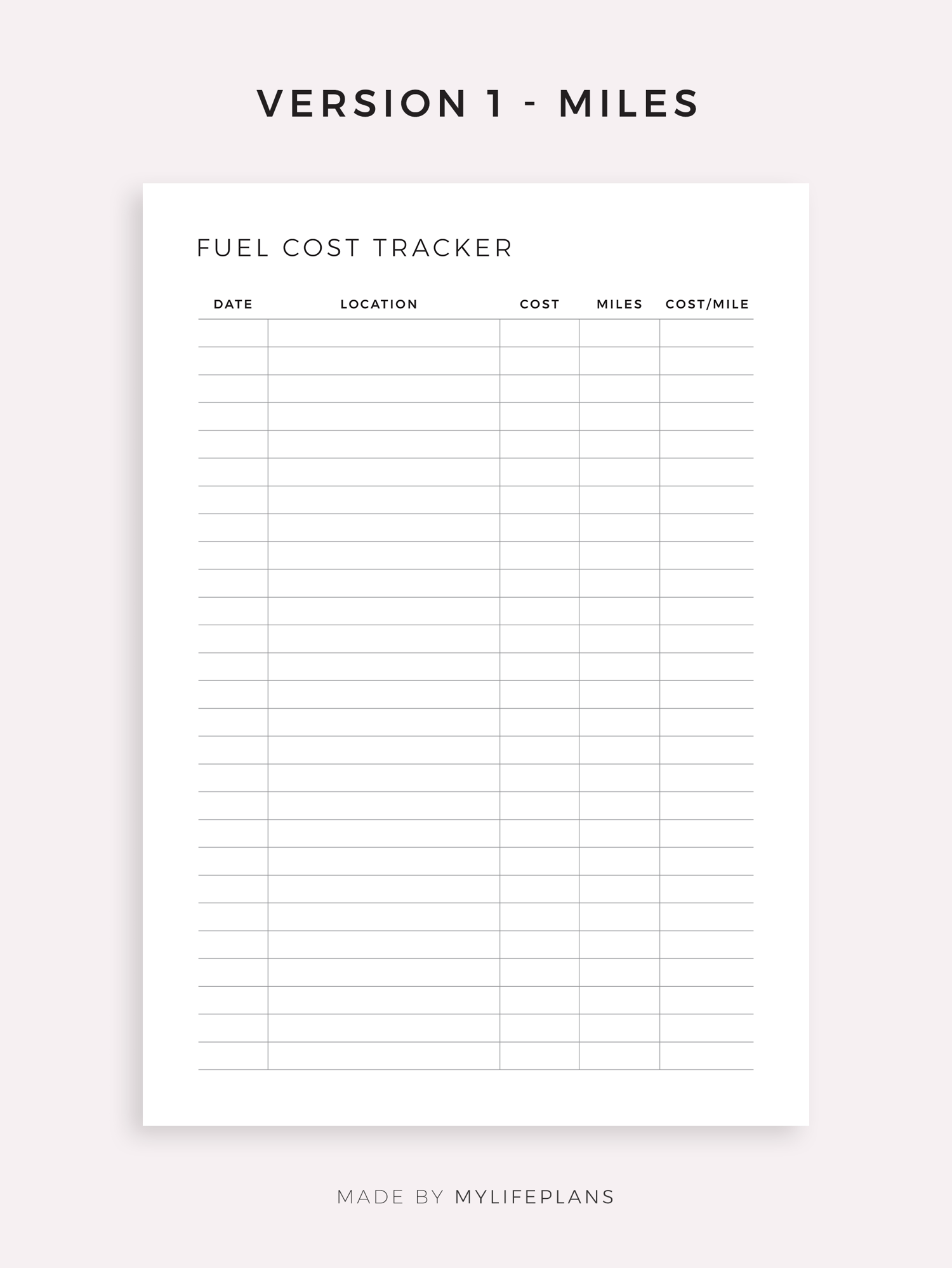 Printable Fuel Cost Tracker, Gas Price Tracker, Cost Per Mile Log, Fuel Expense Planner