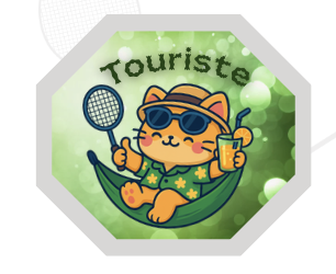 Ce sticker “Touriste”, à coller sous ta raquette, incarne le joueur qui découvre le gymnase comme s’il venait visiter un monument.
