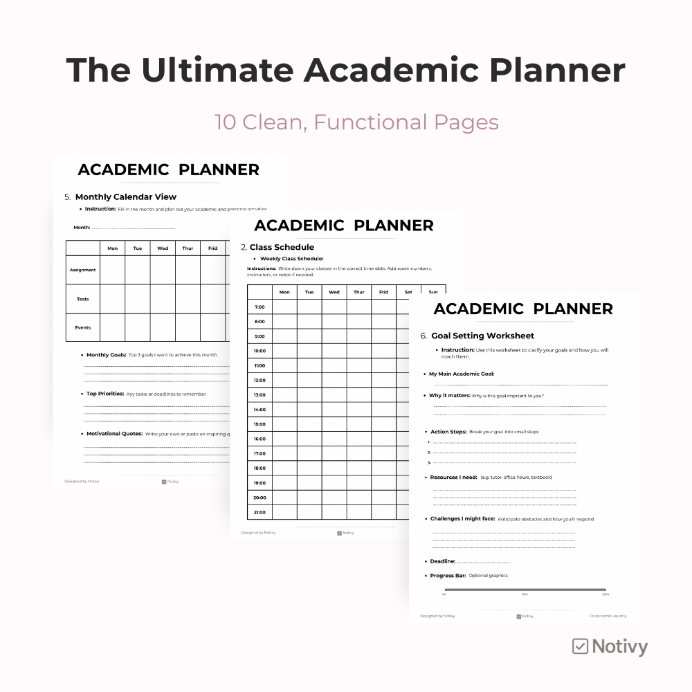 Stay ahead this semester with the Ultimate Academic Planner Worksheets — your all-in-one solution to student success. Whether you’re in high school, college, or university, this printable and digital-friendly planner will help you take control of your time, goals, and personal growth.