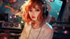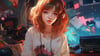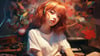 Girl with red hair in white shirt - Digital Illustration - digital download