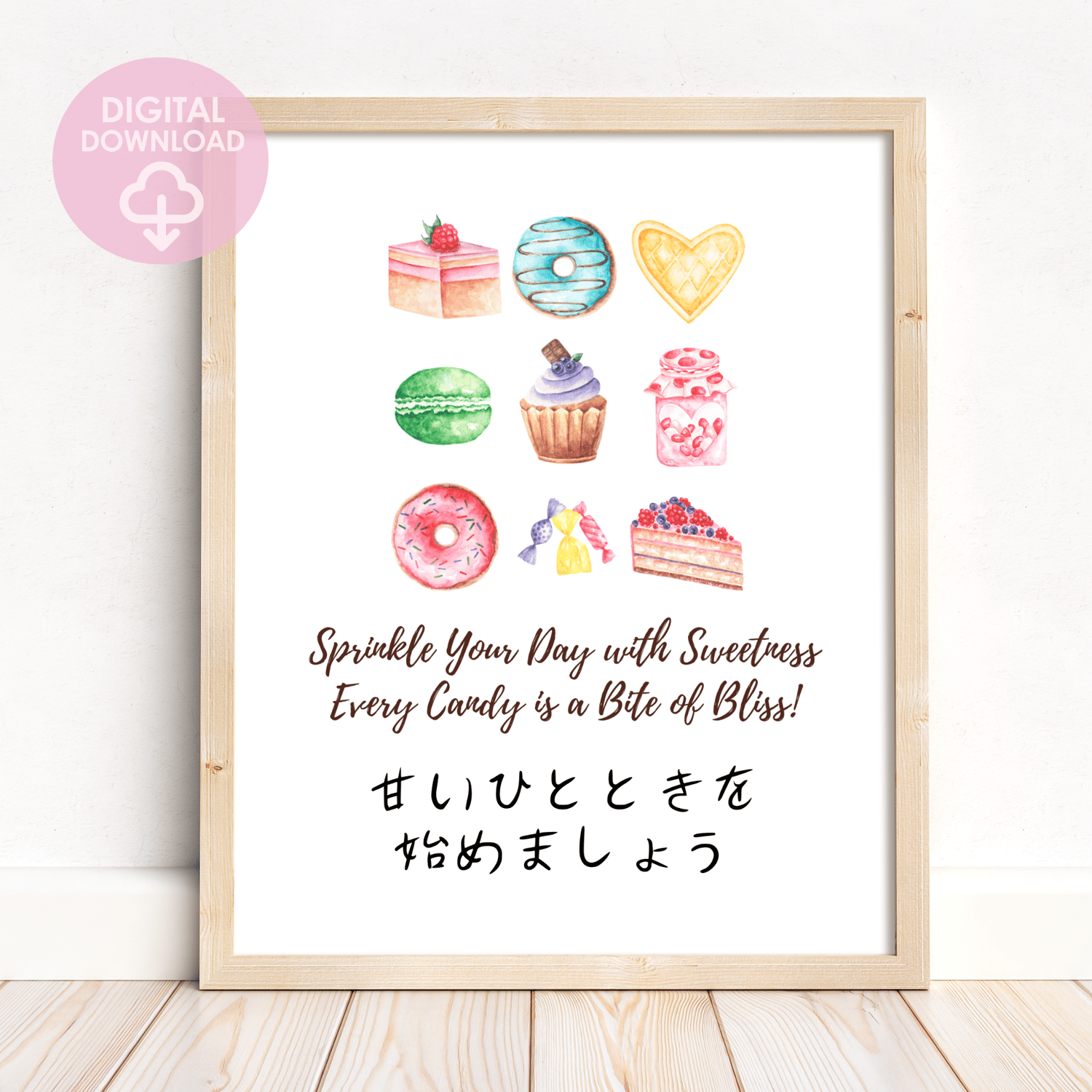 Printable Sweet Desserts Kitchen Decor Print, Japanese Quote Wall Art