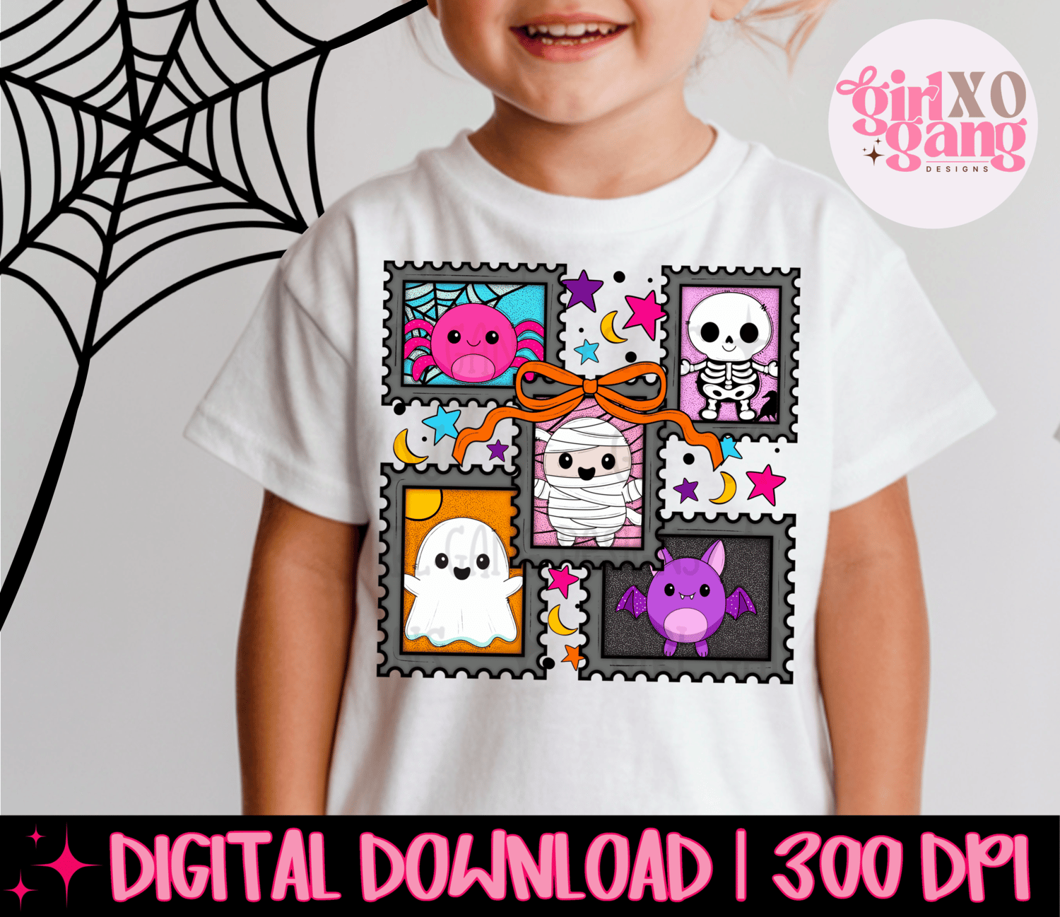 Cute kids Halloween png , stamp design , squish Halloween coquette png