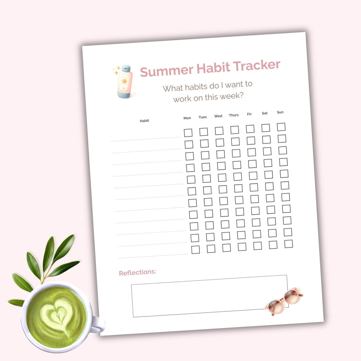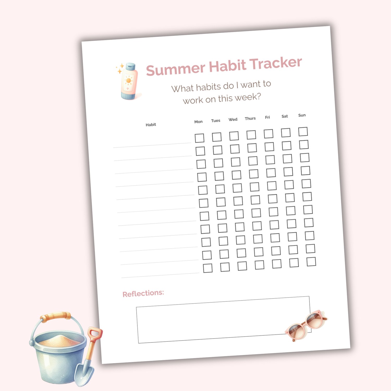 Stay motivated with this Summer Weekly Habit Tracker, featuring beautiful watercolor designs for motivation and inspiration. Track your goals, check off your progress, and use the reflections section to celebrate your wins!