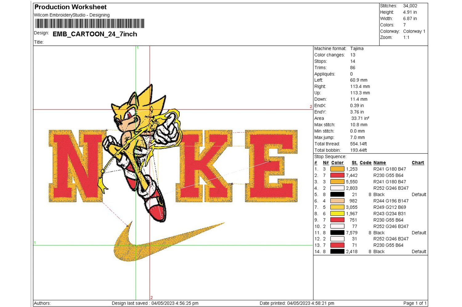 Nikee Super Sonic High Speed The Hedgehog Character Embroidery Designs, Sonic The Hedgehog Machine Embroidery Files, Cartoon Character embroidery designs, Sonic Character, Digital Download
