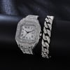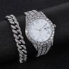 New Full Diamond Fashion Hip Hop Steel Band Watch Chain Gift Box Cuban Bracelet Fashion Gift Men's Watch