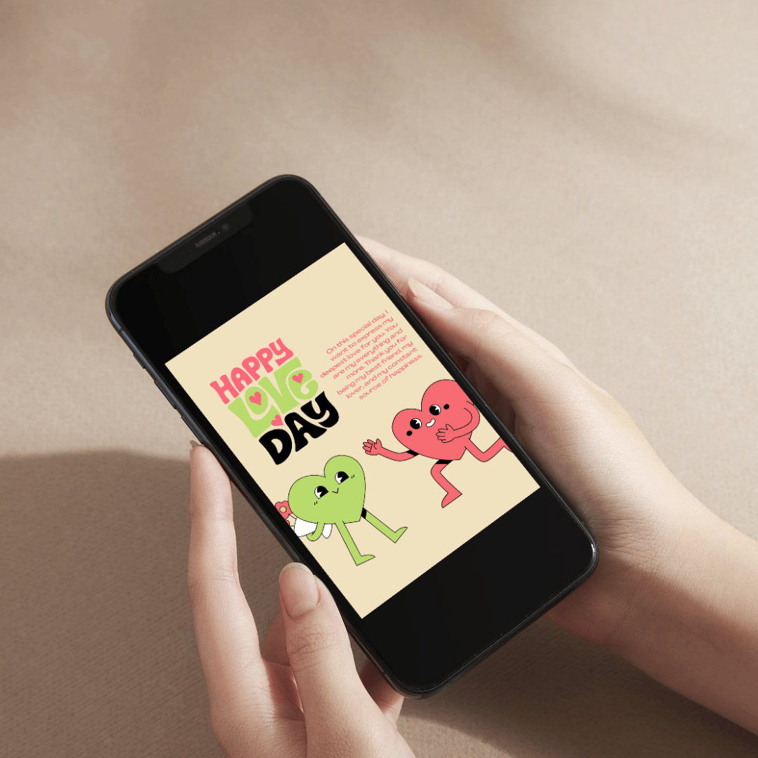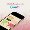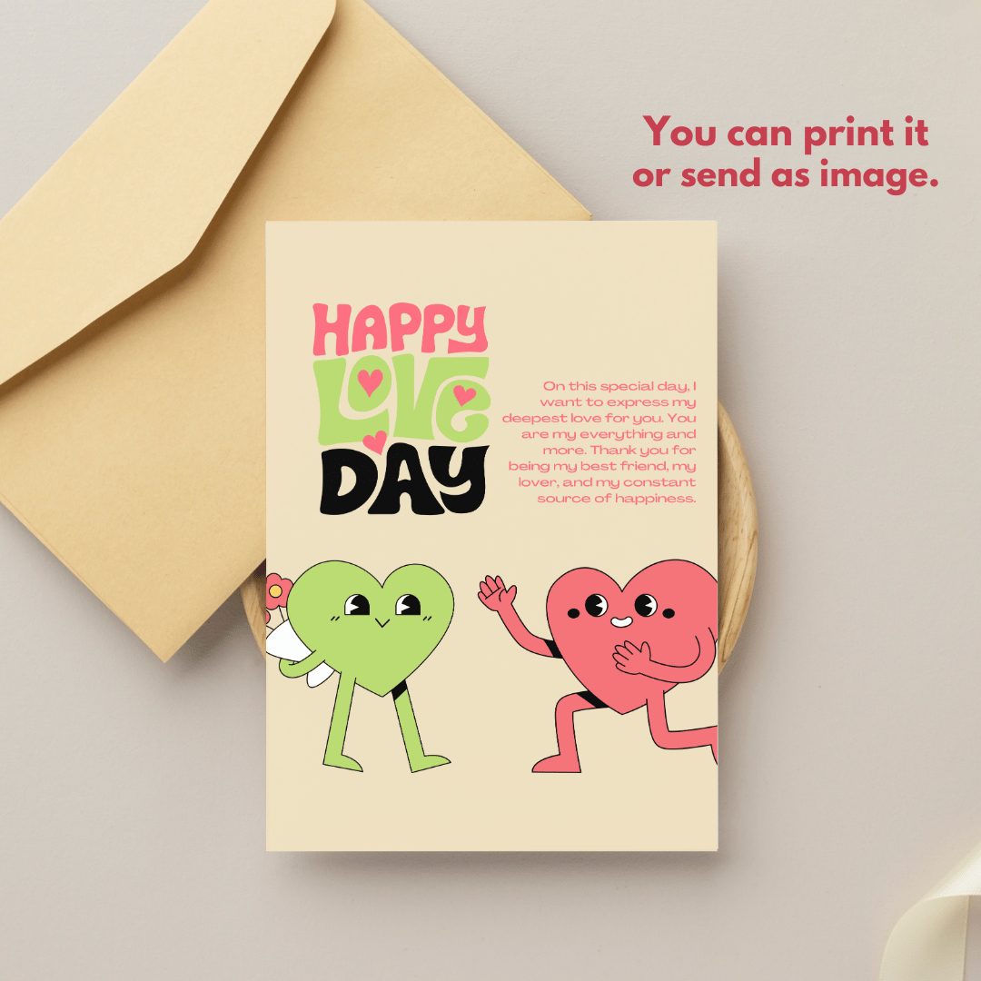 Cartoon Happy Love Day Valentine's Greeting Card Printable Canva Template Design