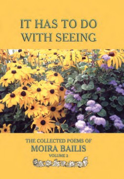 Poet Moira Bailis (1921-2013) began writing poetry before the age of twenty in her native Ireland. Like many poets who write for the love of the art, she did not begin publishing her work extensively until later in life. Since the 1980s, she had over 200 poetry publication credits, both in the United States and Ireland, and has authored one poetry chapbook, poems (2003). The brink of her tenth decade of life saw her still