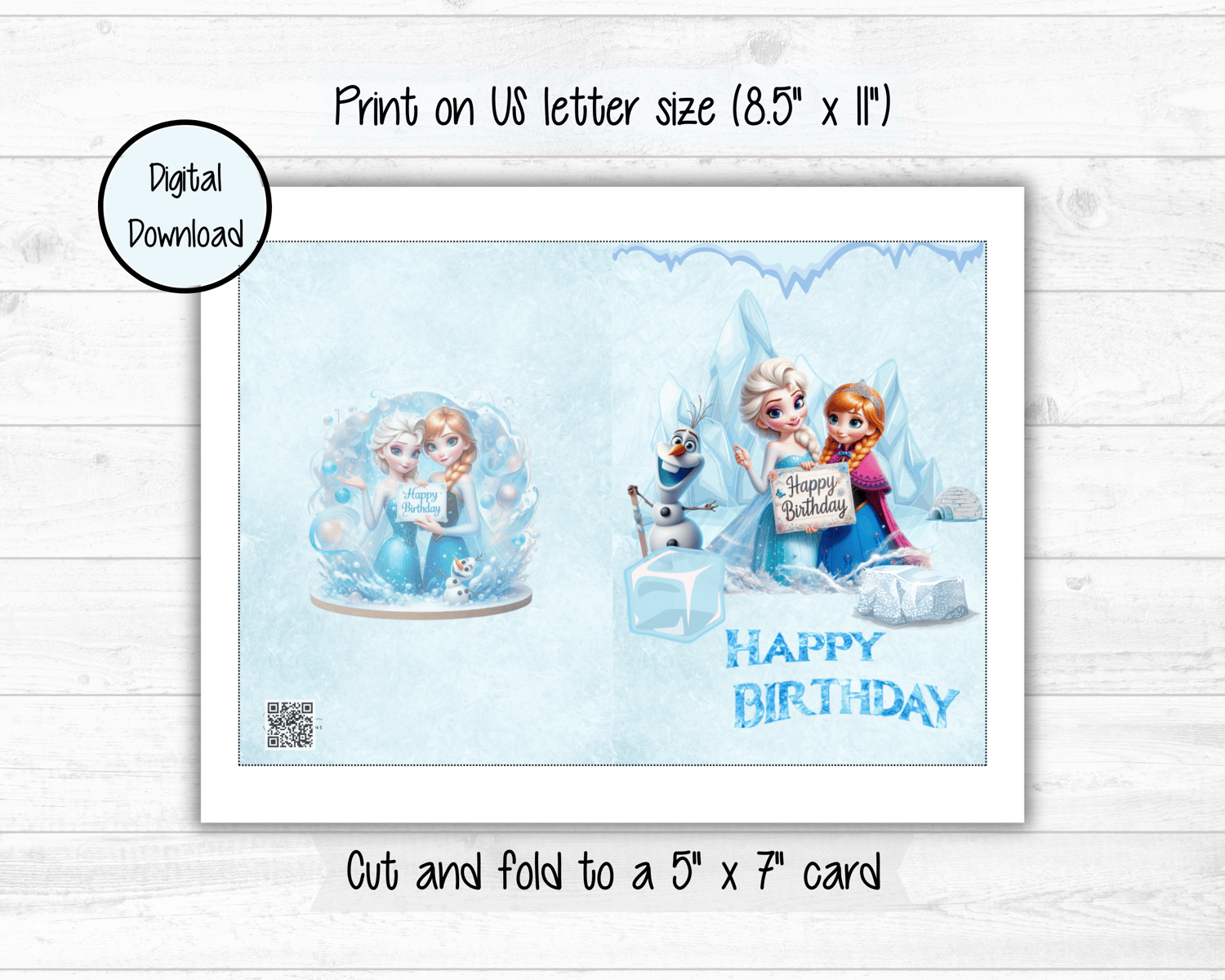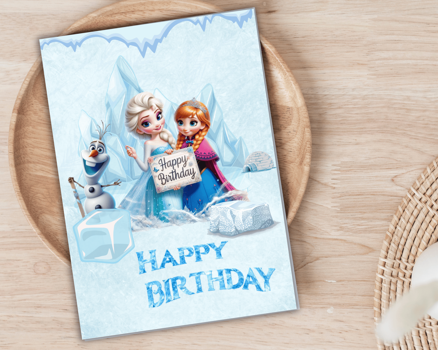 Frozen Birthday Card with Anna, Elsa, and Olaf, Daughter, Granddaughter, Niece, Disney Greeting Card