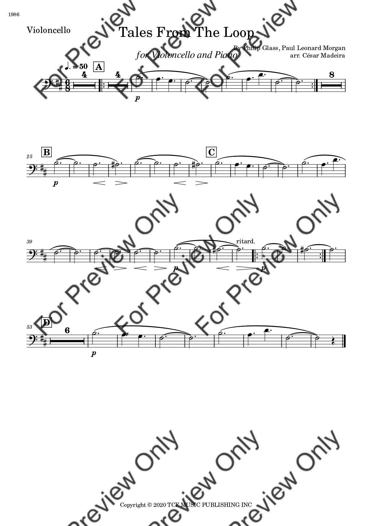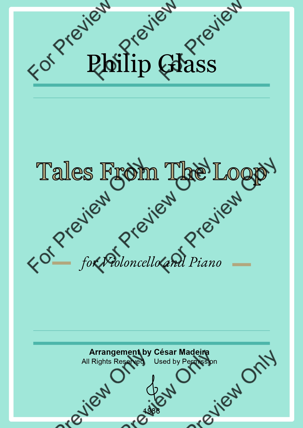 Tales From The Loop by Philip Glass. Arrangement for Violoncello and Piano. With Full Score and Individual Parts. Have fun!
