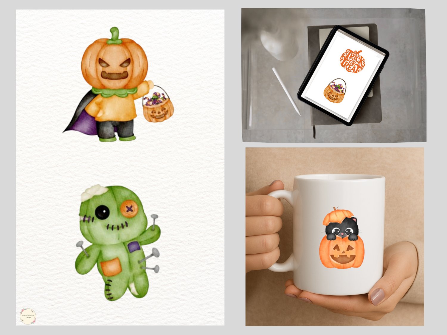 Cute Watercolor Halloween Stickers β Ghost, Cat & Pumpkins (PDF + PNG)