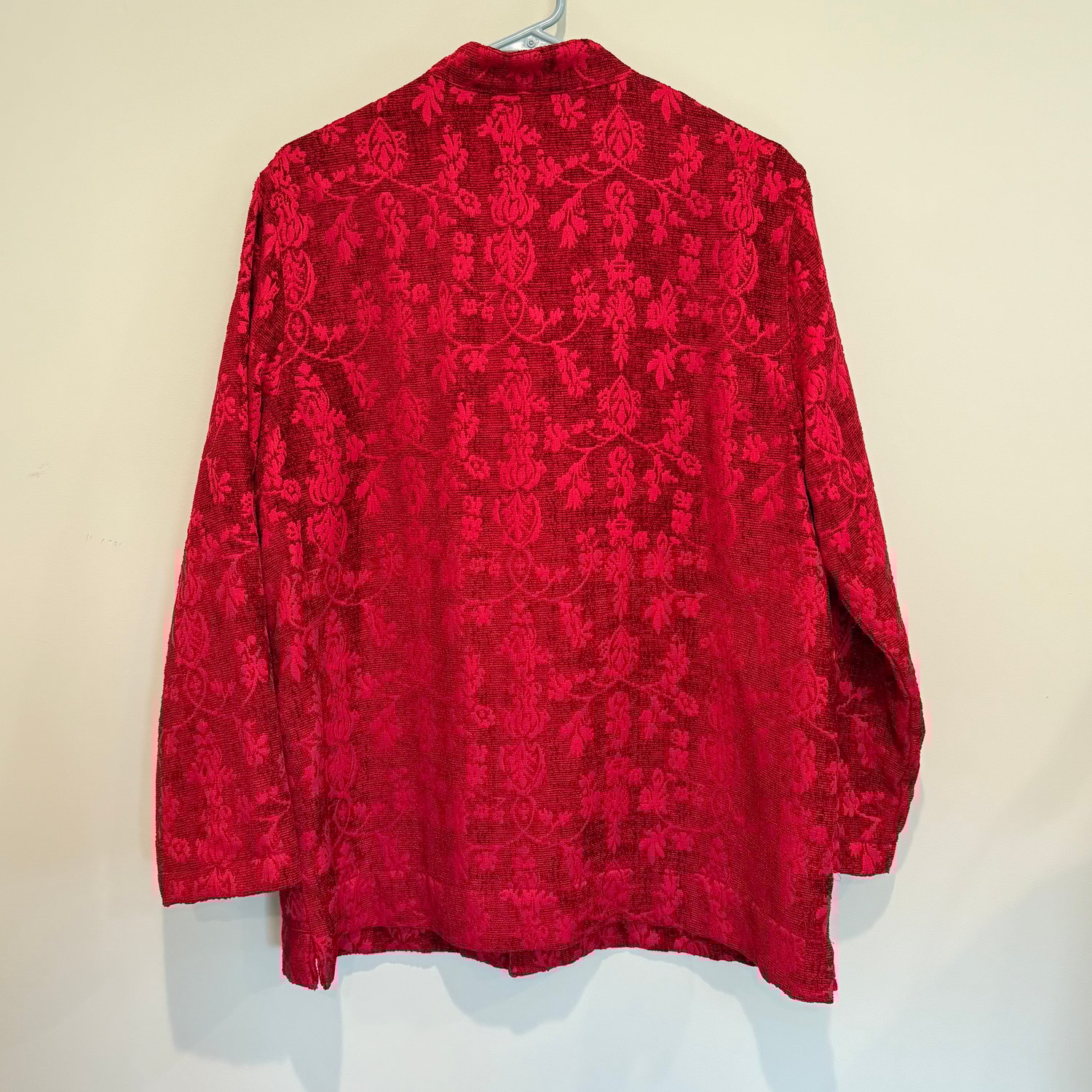 Chico’s Design red jacquard textured floral fabric cardigan/jacket - size Large