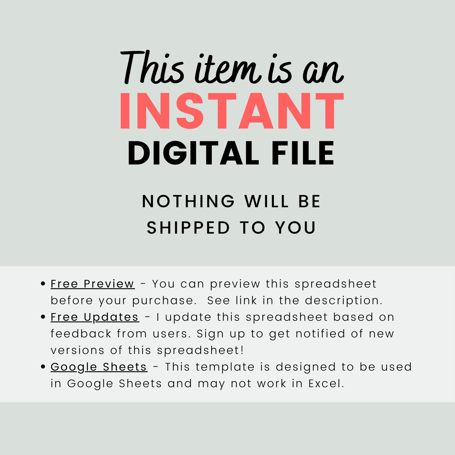 ✓ 1 Google Sheet Template with instructions to set up and customize the spreadsheet