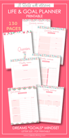 Work through this printable planner and workbook and start to dream, be inspired and believe in all the possibilities of life. Work through the various exercises to get clarity, define your values and picture your dream life. Reverse engineer it and use the printable sheets to organise & plan your days, weeks, months and quarters. Stay motivated and on track with your goal planning.
