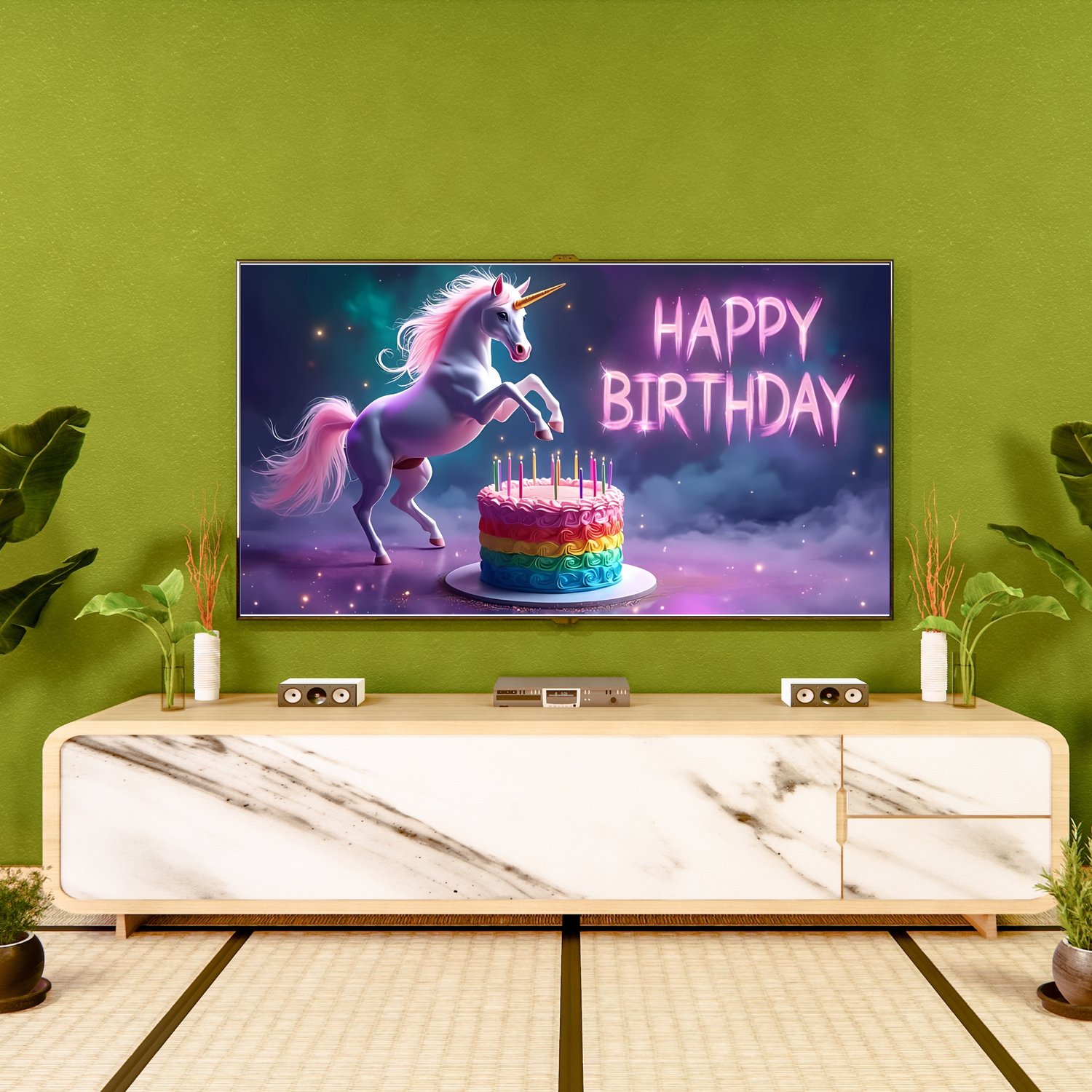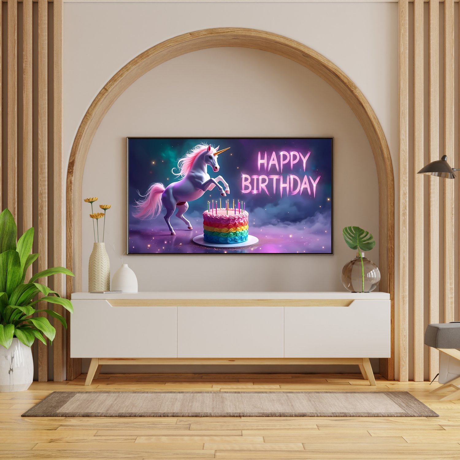Samsung Frame TV Art For Kids, Galaxy Unicorn Frame TV Art, Rainbow Digital Download, 4K Holographic Party Decor Happy Birthday Screensaver